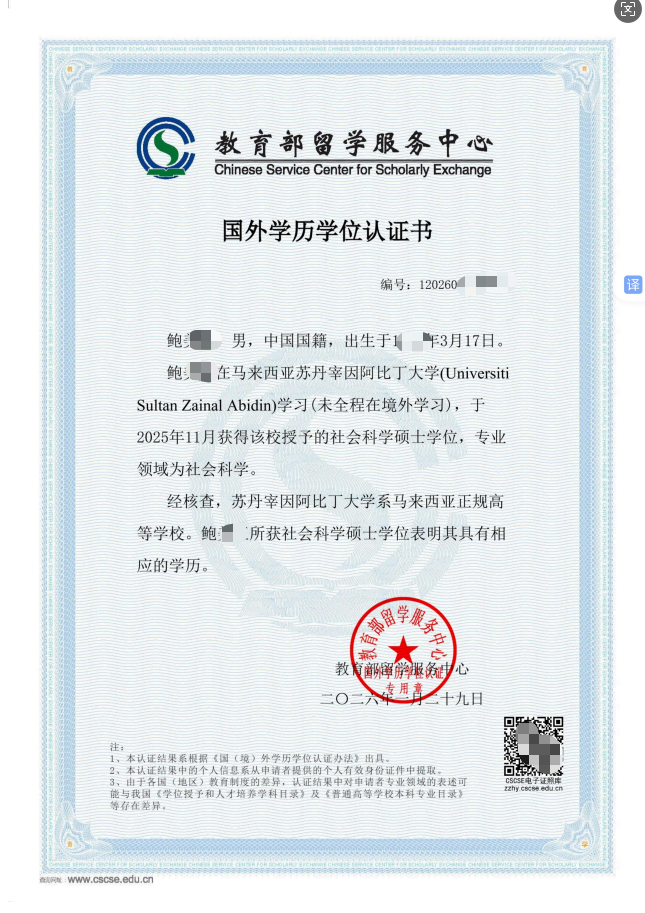 恭喜2025年11月毕业的硕士和博士一共17人以陆续认证成功,成为,我校培养中国学生第二批次,再次向他们祝贺